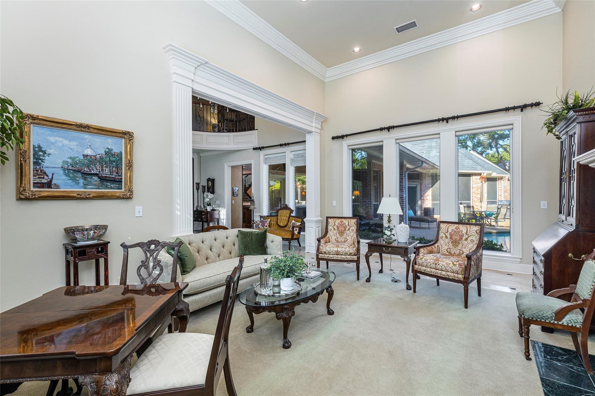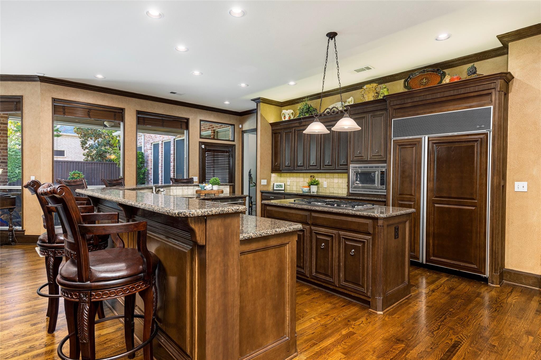 Wonderful Shaddock Custom Home in the GUARDED & GATED Enclave at Willow Bend. This traditional custom home features rich woods, beautiful moldings & custom details throughout. This 5,945 sq. ft. property is perfect for large indoor or outdoor gatherings & features a wet bar, huge kitchen, breakfast area & family room that lead out to the covered patio, pool & oversized yard. Luxurious master suite is nestled in the back of the home & also enjoys views of the back yard & pool. A gorgeous double iron door welcomes your guests into the expansive foyer with sweeping staircase and is flanked by split formals. The downstairs is completed by a handsome study w built-ins & downstairs guest room w en-suite bath. The upstairs features a large game room w built-ins, 3 bedrooms & 2 baths. There is also a back staircase, 2 half baths, oversized laundry room & a 3 car garage. This secluded neighborhood is surrounded by the Gleneagles golf course & boarders 2 scenic ponds. Don’t miss this one!